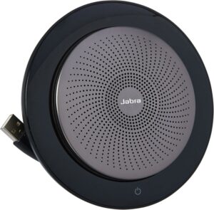 Jabra Speak series and Poly Sync speakerphones optimize audio pickup for small group huddle room meetings.